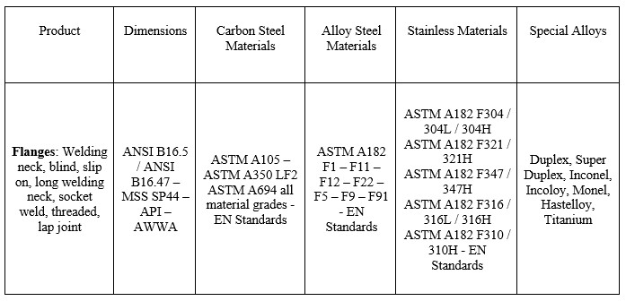 Our complete offer of Flanges is consist of flanges, welding neck flanges (WN) and Long Welding Neck flanges (LWN), Blind, Slip on, Socket weld, Threaded, Lap Joint. Our flanges are available into all ANSI e API classes. Steel, carbon and other available materials.