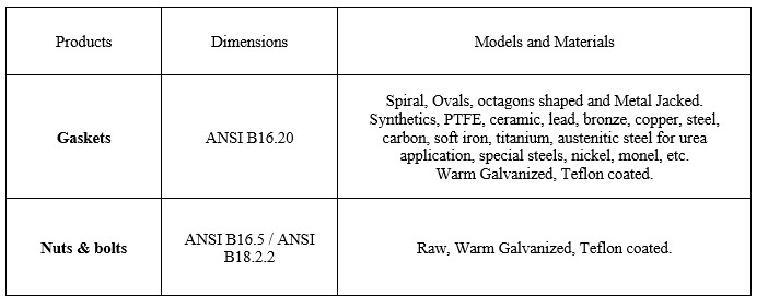 We supply different types of gaskets: spiral, ovals, octagons shaped and made by a wide range of materials.